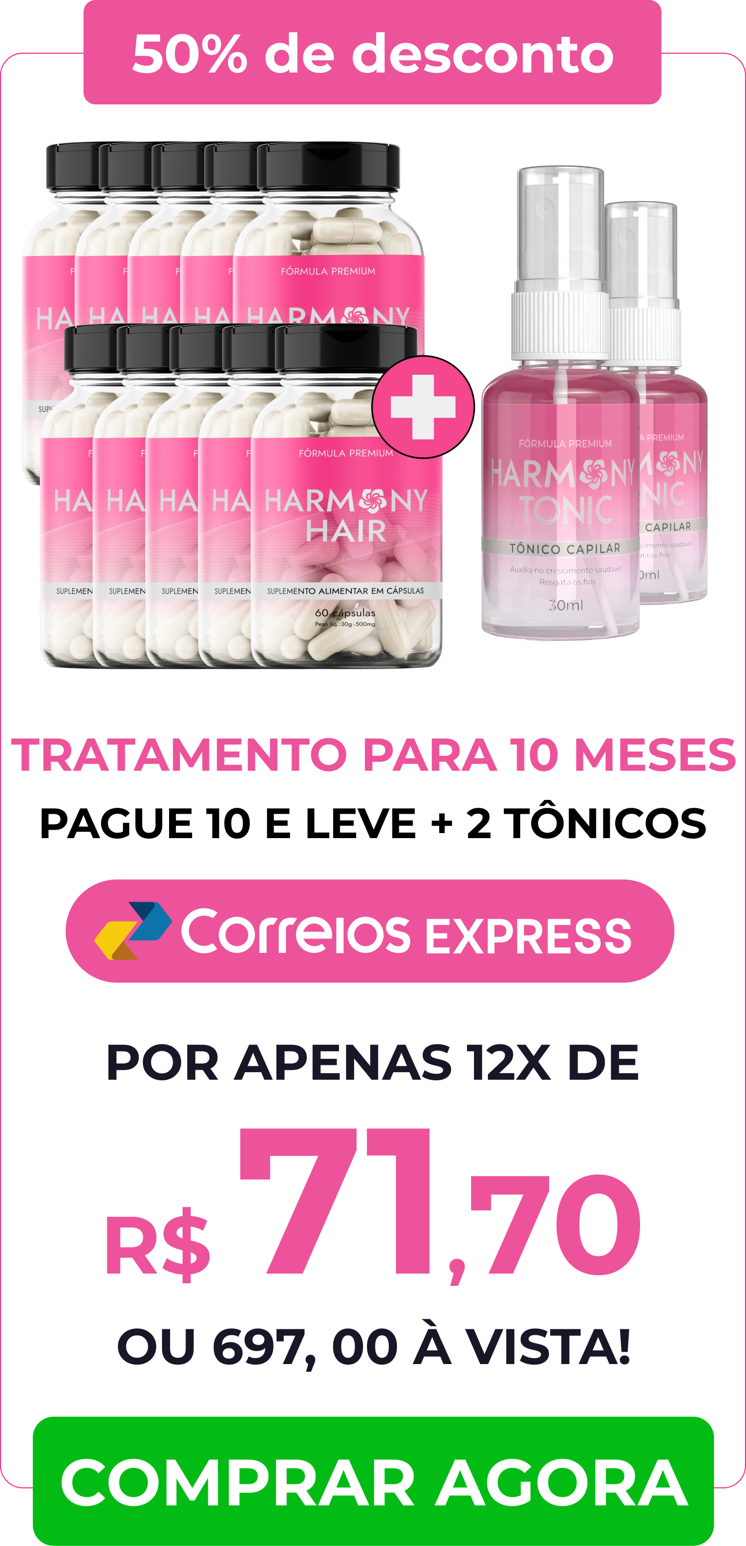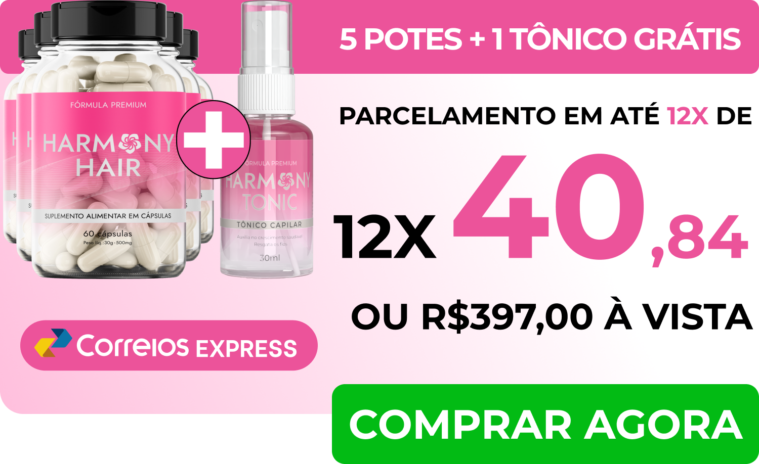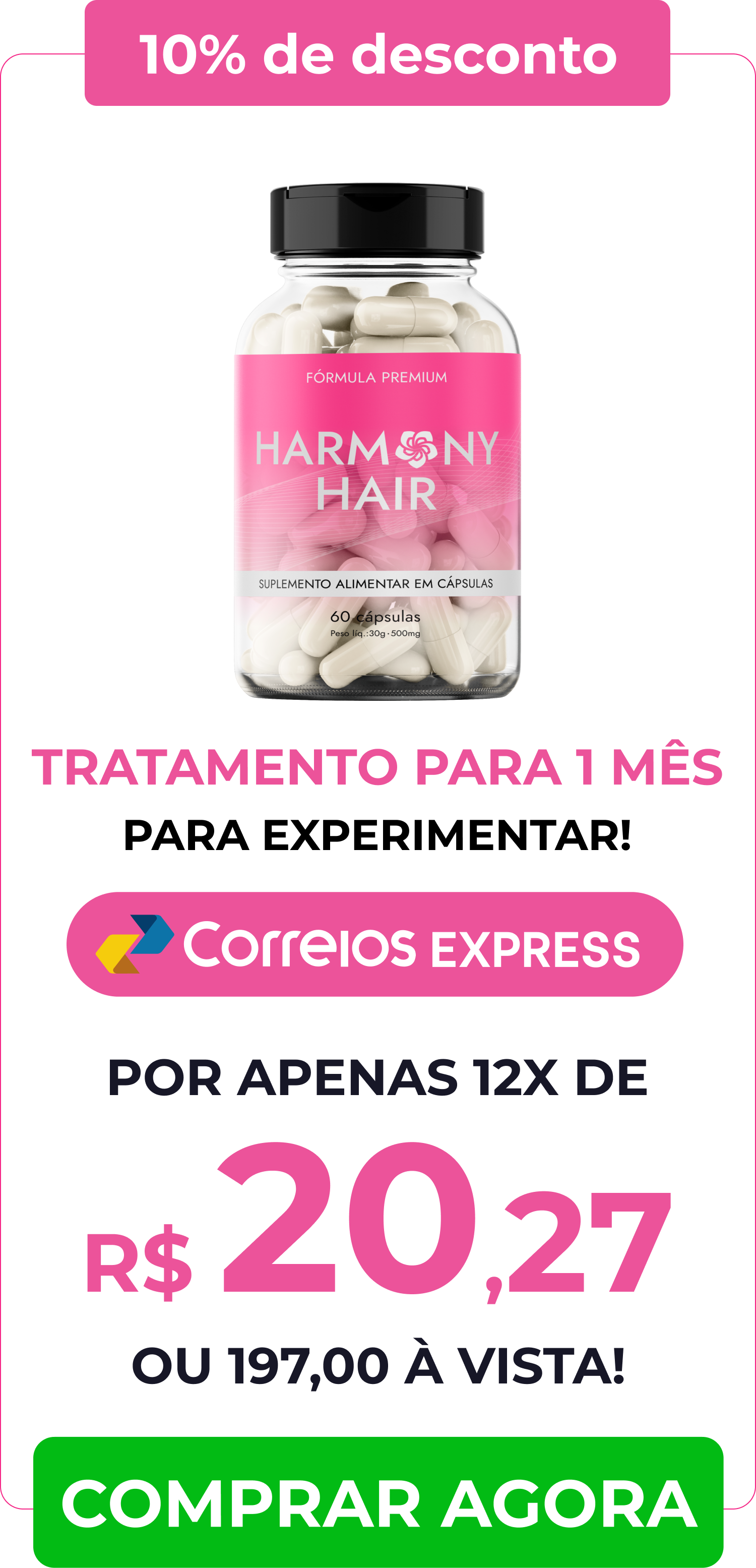 Harmony Hair é diferente de tudo que você já utilizou antes, isso porque é a primeira vez que a ciência consegue juntar tantos ativos poderosos em uma só composição: Ácido Pantotênico + Biotina + Ácido Fólico + Vitaminas.